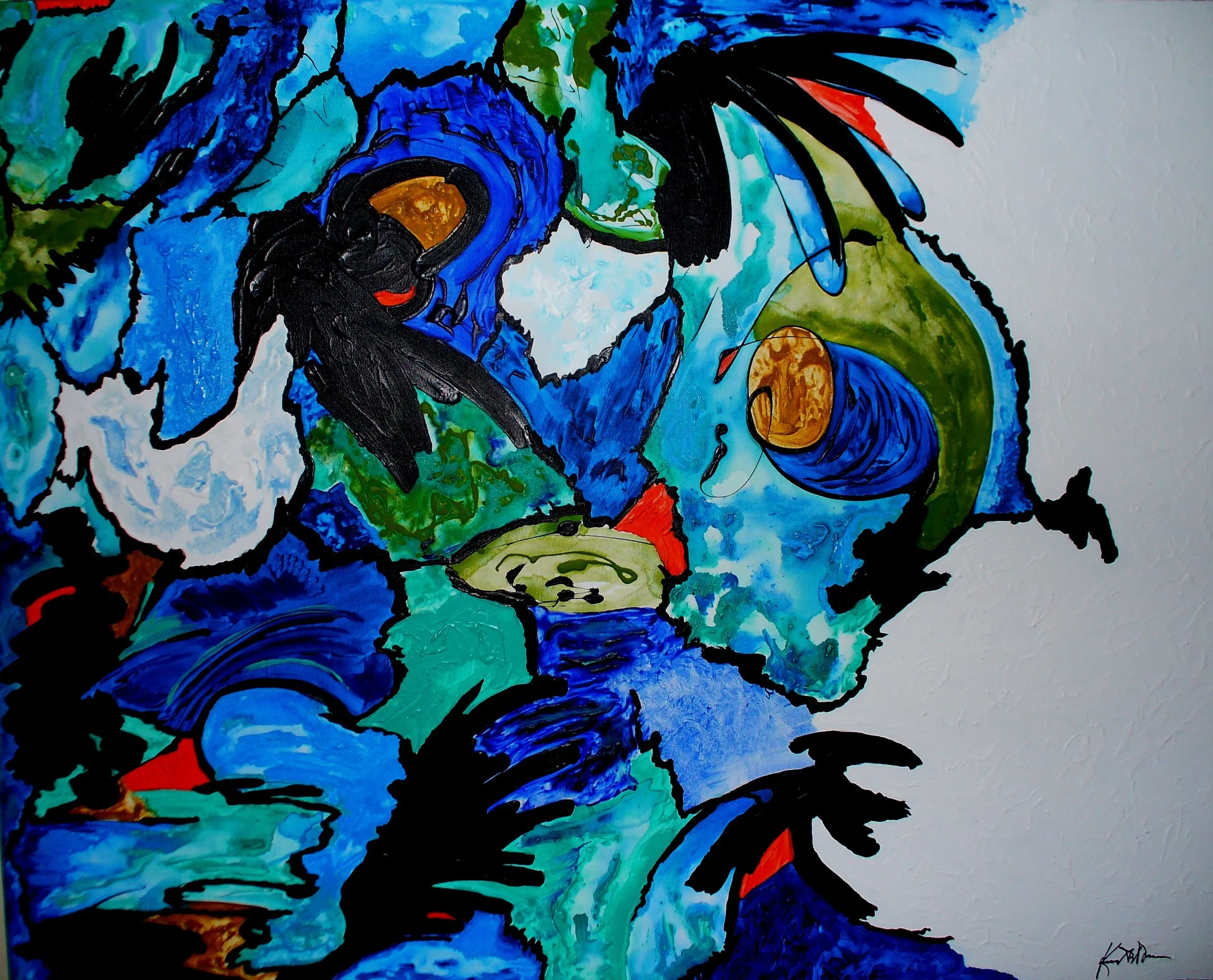 30"x40"x2" Riddle Me That The sister of the painting Riddle Me This which was sold at the Black Hawk Gallery in Danville, CA. several years ago. It was acquired by a couple from Florida. A surfer and since this painting has an ocean theme it was fitting.